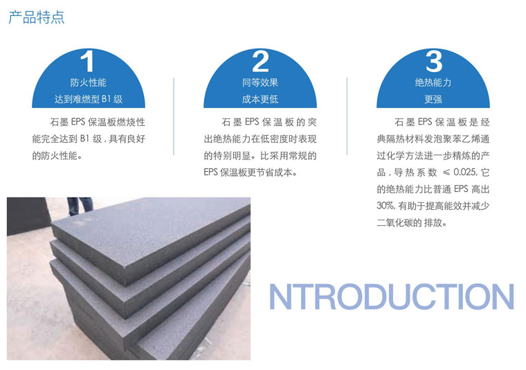 為 滿 足 新 的 建 筑 節 能 要 求 ( 建 筑 節 能 7 5 % ) , 在 傳 統 EPS聚苯板生產的基礎上,公司經過多年的研發和試驗,成功 研發出了**新墻體保溫材料——C〇2石墨聚苯板,該產品導 熱系數低于〇.〇24W/m<,具有高熱阻、低線膨脹率、保溫 效果好、尺寸穩定性好等獨特性能,實現了建筑外墻同等保溫 效果厚度**低,大大減少了建筑墻體厚度,從而增加室內使用 空間,減輕了墻體的荷載。C 0 2石墨聚苯板的問世,使保溫 板在環保保溫、隔熱以及建筑節能等方面提高到了一個新的臺 階。